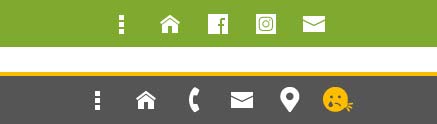 Unsere Mobilansicht zeigt Ihren Kunden ganz oben eine schnelle Kontaktaufnahme und einen schnellen Weg zur Anfahrtskarte. Die drei Punkte stehen für das Menü, welches sich in der Mobilansicht ganz unten befindet (dazu später mehr). Das kleine Häuschen steht für die Startseite, mit dem Telefonhöhrer kann man direkt anrufen, mit dem Brief kann man direkt eine E-Mail schreiben und mit dem Marker kommt man auf Ihrer Website zur Anfahrtskarte (sofern eine vorhanden ist).
